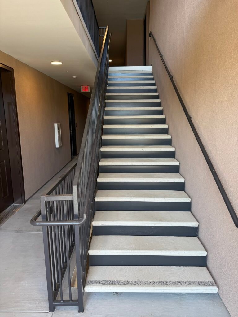balconies, terraces, and staircases.